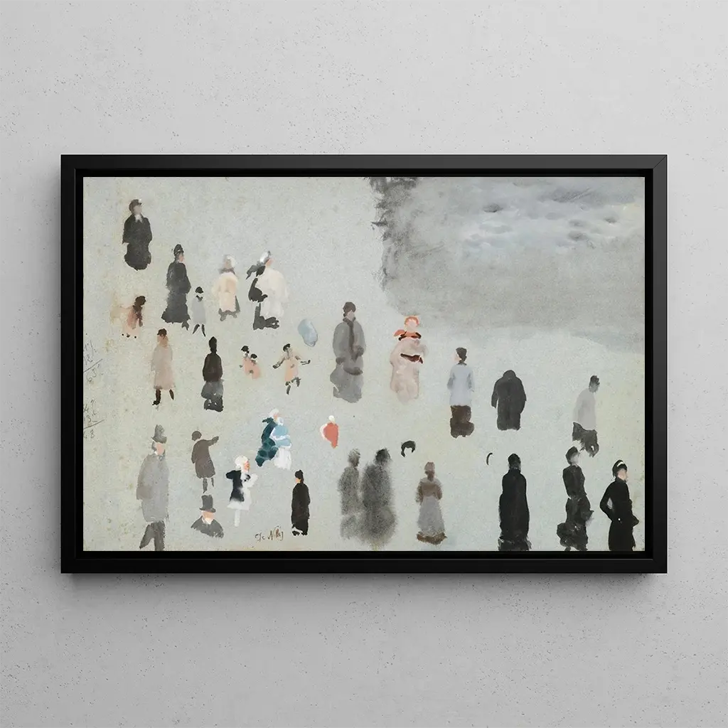 Kohteessa "Sur les routes de Helsinki" Giuseppe De Nittis vangitsee pääkaupungin elävän olemuksen. Tämä taidegrafiikka, valoon kasteltu, johdattaa meidät vilkkaaseen kohtaukseen, jossa ohikulkijat sekoittuvat rattaiden kanssa märillä mukulakivillä. Lämmintä väriä ja varjojen leikkiä sisältävät elementit luovat elävän ja dynaamisen tunnelman, kun taas taiteilijan impressionistinen tekniikka herättää jokaisen yksityiskohdan eloon. Nopeat ja sulavat siveltimenvedot kuvaavat kaupungin liikettä ja energiaa, kutsuen katsojan tuntemaan Pariisin vilinän 1800-luvun lopulla.