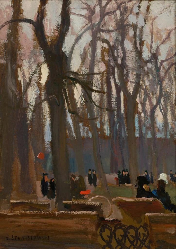 Jan Stanisławski, né en Pologne à la fin du XIXe siècle, est reconnu pour son approche novatrice du paysage. Influencé par l'impressionnisme, il a su développer un style qui met l'accent sur la lumière et la couleur, transformant des scènes ordinaires en œuvres d'art vibrantes. Sa passion pour la nature et son désir de capturer la beauté éphémère des paysages urbains et ruraux sont palpables dans ses créations. Le Fragment du parc Planty illustre parfaitement son talent à immortaliser des instants de vie, tout en reflétant l'importance de la nature dans le quotidien des citadins.