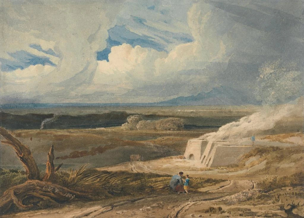 Copley Fielding, actif au début du XIXe siècle, est reconnu comme l'un des grands maîtres de l'aquarelle anglaise. Influencé par le mouvement romantique, il a su capturer des paysages à la fois réalistes et poétiques. Sa carrière a été marquée par des voyages à travers l'Angleterre, où il a puisé son inspiration dans la beauté des paysages britanniques. Fielding a également été membre de la Royal Watercolour Society, ce qui témoigne de son importance dans le monde de l'art. Ses œuvres, dont "Paysage avec four à chaux", sont des témoignages de son habileté à marier technique et émotion, faisant de lui une figure incontournable de son époque.