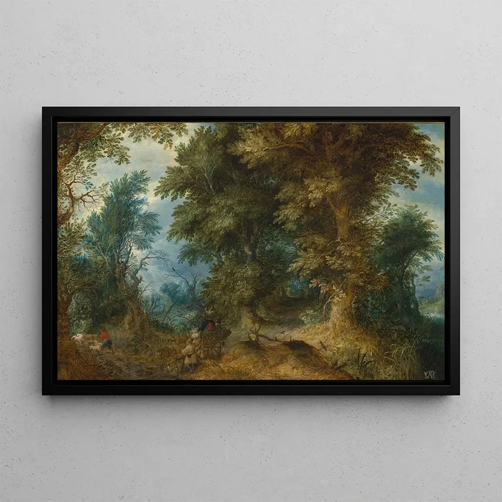 Le tableau "Paysage forestier" d'Abraham Govaerts évoque une immersion dans un monde sylvestre, où la lumière filtre à travers les feuillages denses. Les couleurs riches et terreuses, allant des verts profonds aux bruns chaleureux, créent une atmosphère apaisante et sereine. La technique de Govaerts, caractérisée par des coups de pinceau délicats et une attention minutieuse aux détails, donne vie à chaque élément du paysage, des arbres majestueux aux ruisseaux scintillants. Cette œuvre invite à la contemplation, offrant une évasion visuelle vers un havre de paix naturel.