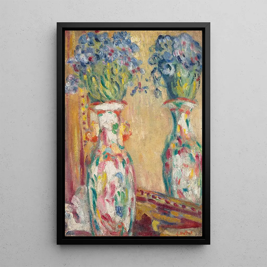 Vase au miroir : harmoninen kukka- ja valoteos Louis Valtatin teos "Vase au miroir" kuvaa herkkää kohtausta, jossa luonto kukoistaa värien räjähdyksessä. Kukat, loistavat ja eloisat, heijastuvat peilissä, luoden syvyyden ja äärettömyyden illuusion. Valtatin impressionistinen tekniikka ilmenee rohkeiden siveltimenvetojen ja hienovaraisien sävyjen kautta, jotka luovat keveyden ja rauhan tunnelman. Tämä taidegrafiikka kutsuu katsojan sukeltamaan maailmaan, jossa kukkaloisto yhdistyy pehmeään valoon, tarjoten todellisen ylistyksen luonnolle. Louis Valtat : fauvismin pioneeri Louis Valtat, 1900-luvun alun ranskalainen taiteilija, liitetään usein fauvistiseen liikkeeseen, joka korostaa rohkeaa värien käyttöä. Vaikutteita hän on saanut taiteilijoilta kuten Matisse ja Derain, ja hän on kehittänyt ainutlaatuisen tyylin, joka yhdistää värien eloisuuden ja runollisen herkkyyden. Hänen uransa kattaa useita vuosikymmeniä, joiden aikana hän tutki erilaisia teemoja, erityisesti luontoa ja maisemia. "Vase au miroir" todistaa hänen kyvystään vangita valoa ja värejä, tehden hänestä olennaisen hahmon modernissa taiteessa. Monipuolinen koristeellinen taidegrafiikka Louis Valtatin "Vase au miroir" -taidegrafiikan reproduktio on erinomainen koristeellinen valinta sisustuksesi kaunistamiseksi. Olipa kyseessä olohuone, toimisto tai makuuhuone, tämä taidegrafiikka lisää raikkautta ja eleganssia. Sen taidegrafiikan laatu takaa upean uskollisuuden alkuperäisen teoksen väreille ja yksityiskohdille, samalla tarjoten esteettistä vetovoimaa. Sisällyttämällä tämän teoksen osaksi sisustustasi, kutsut luontoa osaksi kotiasi ja saat samalla palan taiteen historiaa, joka varmasti kiehtoo vieraitasi.