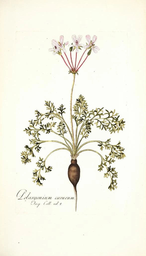 Nikolaus Joseph Freiherr von Jacquin tunnetaan yhtenä 1700-luvun kasvitieteellisen taidegrafiikan pioneereista. Hänen syvälliset tutkimuksensa ja matkansa mahdollistivat monien kasvien, kuten Pelargonium carneumin, löytämisen ja dokumentoinnin. Ajan tieteellisten virtauksien vaikutuksesta Jacquin osasi yhdistää taiteen ja tieteen, tehden teoksistaan ei vain esteettisiä, vaan myös opettavaisia. Hänen työnsä on vaikuttanut pysyvästi kasvitieteeseen ja taiteeseen, tehden hänestä merkittävän hahmon näillä aloilla.