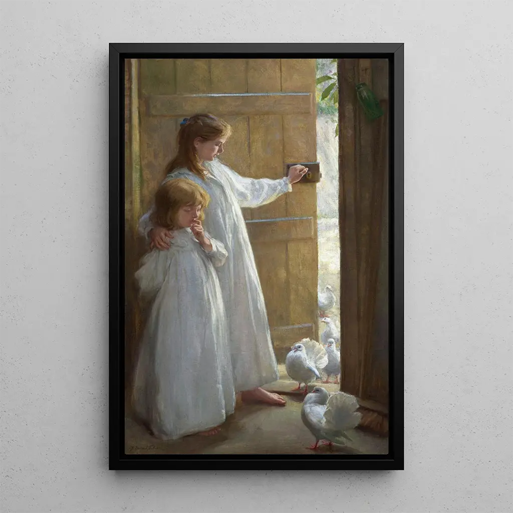 "Les sœurs", œuvre de Percy Harland Fisher, capture un moment de tendresse et d'intimité entre deux jeunes filles. Les teintes douces et pastel, associées à une lumière délicate, créent une atmosphère chaleureuse et nostalgique. La composition met en avant les visages radieux des sœurs, leurs expressions révélant une complicité profonde. Fisher utilise une technique de peinture qui accentue la douceur des traits et la luminosité des couleurs, rendant ce tableau particulièrement attachant. Ce portrait, empreint d’émotion, invite à réfléchir sur les liens familiaux et l'innocence de l'enfance.