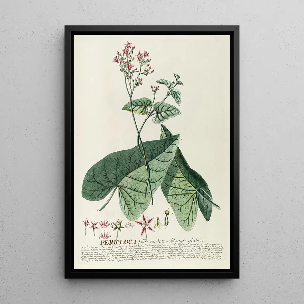 Periploca- taidegrafiikka Georg Dionysius Ehretiltä on todellinen juhla kasvitieteellisen kauneuden kunniaksi. Tämä teos korostaa herkkää sommittelua, jossa orgaaniset muodot sekoittuvat sulavasti. Pehmeät värit ja yksityiskohtaiset lehdet ja kukat luovat rauhoittavan ja inspiroivan ilmapiirin. Ehretin käyttämä kaiverrustekniikka mahdollistaa jokaisen elementin esittämisen uskomattoman tarkasti, tarjoten täydellisen uppoutumisen kasviuniversumiin. Tämä kangas kutsuu mietiskelyyn ja luonnon rikkauksien ihailuun.