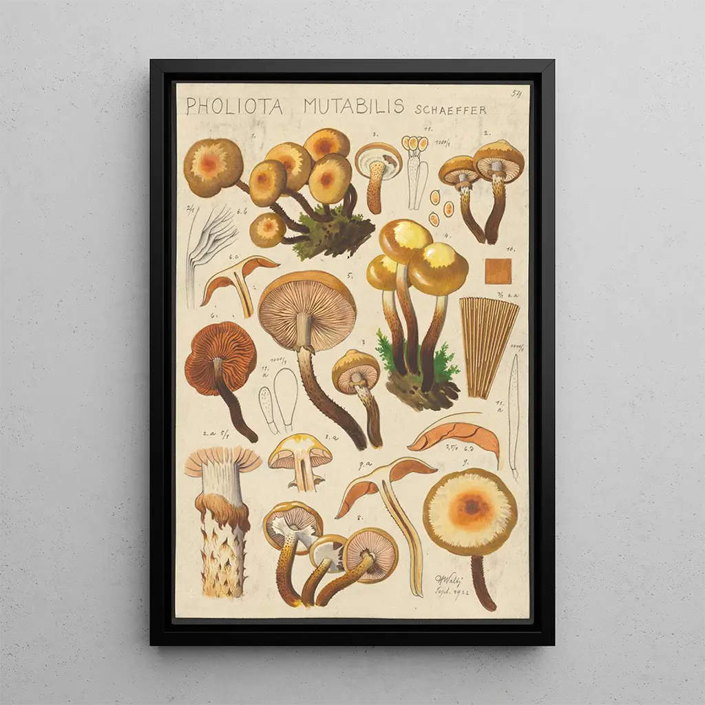 Taidegrafiikka Pholiota mutabilis Schaefferista kuljettaa meidät maailmaan, jossa muotojen ja värien monimuotoisuus kukoistaa. Hans Baldung, poikkeuksellisella taidollaan, vangitsee näiden sienten ohikiitävän kauneuden, paljastaen eloisia sävyjä, jotka viittaavat luonnon rikkauksiin. Sävellys, sekä dynaaminen että harmoninen, kutsuu tarkkaavaiseen pohdintaan, jossa jokainen yksityiskohta tuntuu elävän omaa elämäänsä. Tämä teos huokuu rauhallisuutta ja kiehtovuutta, tarjoten ainutlaatuisen näkymän usein tuntemattomaan maailmaan.