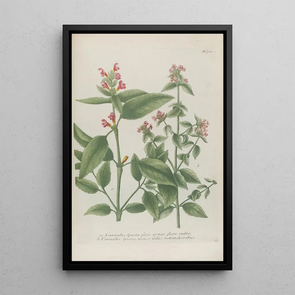Taidegrafiikka Phytanthoza iconographia Pl024, jonka on luonut Johann Wilhelm Weinmann, on teos, joka kutsuu ihmettelemään visuaalisen rikkautensa ansiosta. Tämä kasvitieteellinen kuva on erottuva kirkkaiden värien ja yksityiskohtien ansiosta, vangiten kasvien kauneuden poikkeuksellisella tarkkuudella. Weinmannin käyttämä messinkilaserotekniikka mahdollistaa jokaisen lehden ja terälehden esittämisen selkeästi, luoden sekä tieteellisen että runollisen tunnelman. Teos viittaa rehevään puutarhaan, jossa luonto on esillä koko loistossaan, innostaen katsojaa sukeltamaan kiehtovaan kukkamaailmaan.