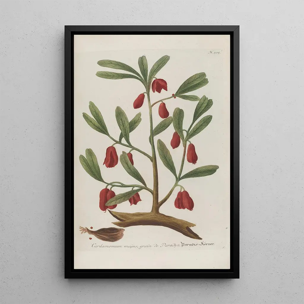 Phytanthoza iconographia Pl028:n taidegrafiikka kuljettaa katsojan kiehtovaan kasviuniversumiin, jossa jokainen kasvi on esitetty poikkeuksellisella tarkkuudella. Värien eloisat sävyt, syvistä vihreistä herkkään vaaleanpunaiseen, luovat harmonisen koostumuksen, joka vangitsee katseen. Johann Wilhelm Weinmannin kaiverrustekniikka korostaa yksityiskohtien rikkautta, lehdistä kukkiin, tarjoten täydellisen uppoutumisen luonnon kauneuteen. Tämä teos on todellinen kutsu tutkia ympäröivää kasvilajiston monimuotoisuutta.