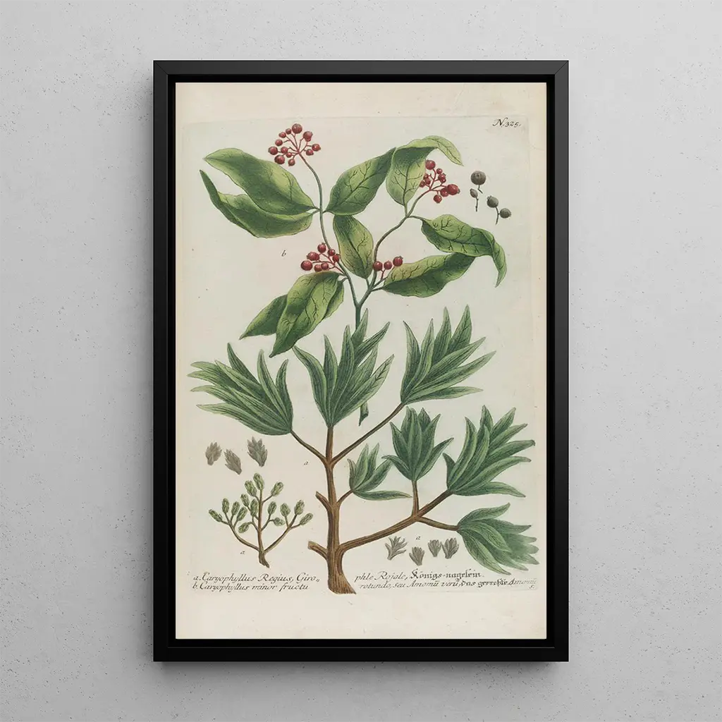 Taidegrafiikka Phytanthoza iconographia Pl048 vie meidät maailmaan, jossa kasvit kukoistavat loistossaan. Johann Wilhelm Weinmannin teos erottuu huolellisesti esitettyjen kasvien ansiosta, jossa jokainen yksityiskohta on huolella korostettu. Kirkkaat värit ja herkästi muotoillut kukat luovat elävän ja dynaamisen ilmapiirin, joka kutsuu ihmettelemään. Kaiverrustekniikka, yhdistettynä terävään havaintokykyyn, mahdollistaa näiden kasvilajien olemuksen vangitsemisen, tarjoten visuaalisen kokemuksen, joka viehättää katsojaa.