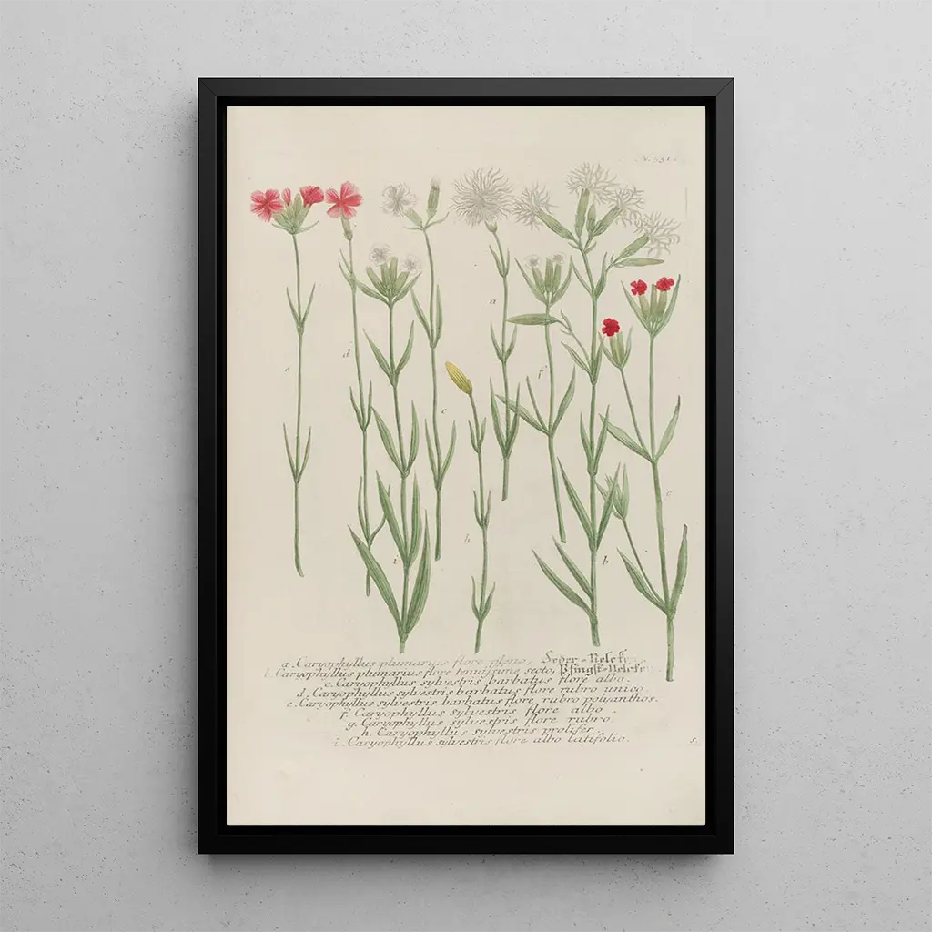 Taidegrafiikka Phytanthoza iconographia Pl054 vie meidät rikkaaseen ja värikkääseen kasvitieteelliseen maailmaan. Tämä teos, jonka on luonut Johann Wilhelm Weinmann, erottuu huolellisen koostumuksensa ja loistavien värien ansiosta. Jokainen kasvien yksityiskohta on tarkasti esitetty, luoden sekä tieteellisen että runollisen tunnelman. Vihreän, vaaleanpunaisen ja keltaisen sävyt kietoutuvat harmonisesti yhteen, luoden elämän ja liikkeen tunteen. Taiteilija onnistuu vangitsemaan luonnon olemuksen, kutsuen katsojan tarkkailemaan kasvien kauneutta syvällisesti.