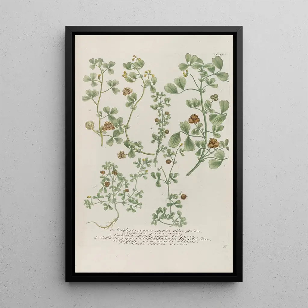 L reproduction of Phytanthoza iconographia Pl125 kuljettaa meidät vehreään maailmaan, jossa jokainen kasvien yksityiskohta on huolellisesti esitetty. Värikkäät, kirkkaista vihreistä pehmeämpiin sävyihin siirtyvät värit luovat sekä elävän että rauhoittavan tunnelman. Johann Wilhelm Weinmannin käyttämä kaiverrustekniikka korostaa kasvien muotojen ja tekstuurien herkkää kauneutta, kunnioittaen luonnon kauneutta. Tämä teos, taiteen ja tieteen risteyksessä, kutsuu tarkkaavaiseen pohdintaan, paljastaen kasvipaljun rikkauden ja monimuotoisuuden.