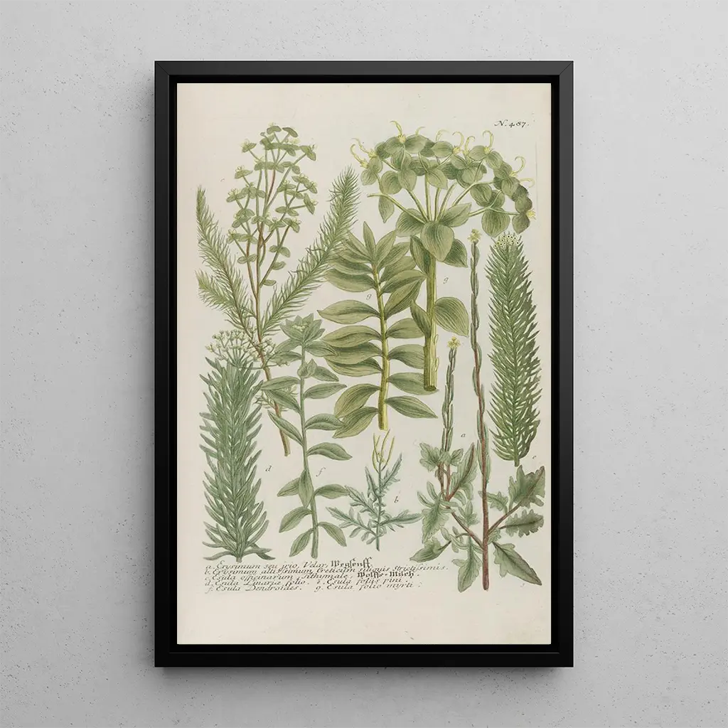 Taidetta Phytanthoza iconographia Pl210 -taidegrafiikasta vie meidät rikkaaseen ja värikkääseen kasvitieteelliseen maailmaan. Tämä teos, jonka on luonut Johann Wilhelm Weinmann, erottuu yksityiskohtaisuudellaan ja eloisilla väreillään, jotka vangitsevat esitettyjen kasvien olemuksen. Vihreän, keltaisen ja punaisen sävyt kietoutuvat harmonisesti yhteen, luoden elävän ja dynaamisen ilmapiirin. Käytetty kaiverrustekniikka korostaa jokaisen lehden ja terälehden yksityiskohtia, tarjoten syvyyden ja realismin tunteen. Tämä taideteos kutsuu ihailuun ja luonnonkauneuden pohdintaan.