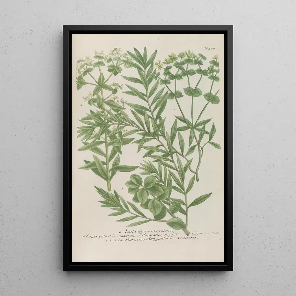 La taidegrafiikka de Phytanthoza iconographia Pl211 kuljettaa meidät rehevään puutarhaan, jossa jokainen kasvi on esitetty poikkeuksellisella tarkkuudella. Johann Wilhelm Weinmann onnistuu tämän teoksen kautta vangitsemaan kasvipaljouden ja monimutkaisuuden. Kirkkaita sävyjä ja hienostuneita yksityiskohtia sisältävät kuvitukset luovat sekä rauhoittavan että inspiroivan tunnelman. Kaiverrustekniikka, yhdistettynä terävään estetiikan tajuun, kunnioittaa kasvien luonnollista kauneutta ja kutsuu katsojan tutkimaan jokaista elementtiä uteliaisuudella.