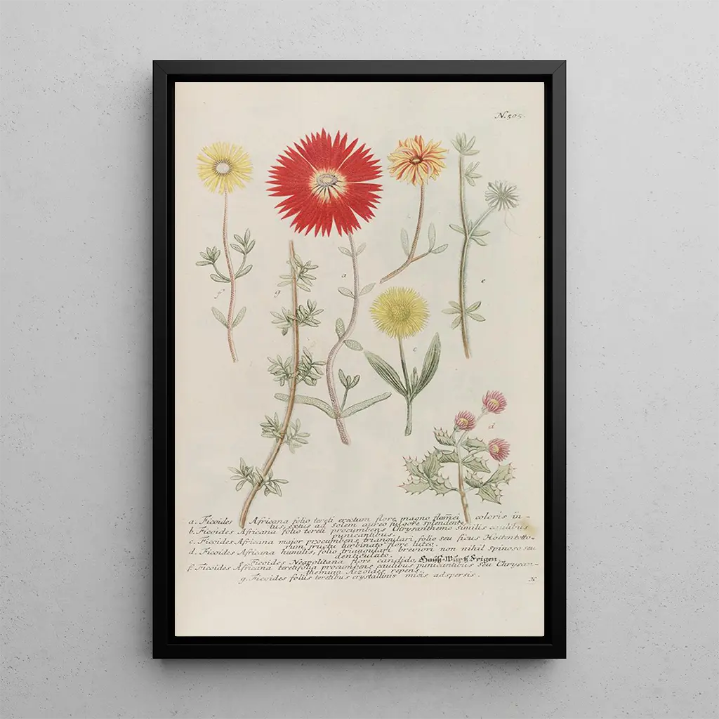 L reproduction de Phytanthoza iconographia Pl228 kuljettaa meidät kukkivien ihmeiden maailmaan, jossa jokainen kasvi on esitetty uskomattomalla tarkkuudella. Näiden teosten kirkkaat värit ja hienostuneet yksityiskohdat vangitsevat luonnon olemuksen, herättäen raikkauden ja elinvoiman tunteen. Tämä kasvi-illustration harmoninen koostumus kutsuu löytöretkelle, jokainen kukka ja lehti kertoo ainutlaatuisen tarinan. Kaiverrustekniikka, rohkeiden sävyjen valinnan kanssa, luo sekä rauhoittavan että stimuloivan ilmapiirin, täydellisen piristämään mitä tahansa tilaa.