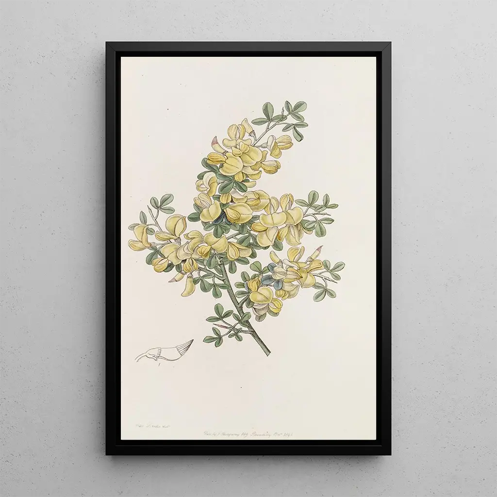 Taidegrafiikka teoksesta "Calycotome piquant" Sydenham Edwardsilta kuljettaa meidät Välimeren kasviston sydämeen. Kultaisen ja vihreän sävyinen tämä taulu herättää auringon lämpöä ja luonnon monimuotoisuutta. Edwardsin käyttämä maalaustekniikka korostaa kukkien ja lehtien yksityiskohtia, luoden harmonisen ja elävän koostumuksen. Jokainen tämän teoksen elementti vaikuttaa kertovan tarinan, kutsuen katsojan tutkimaan tämän ikonisen kasvin villiä ja herkkää kauneutta.