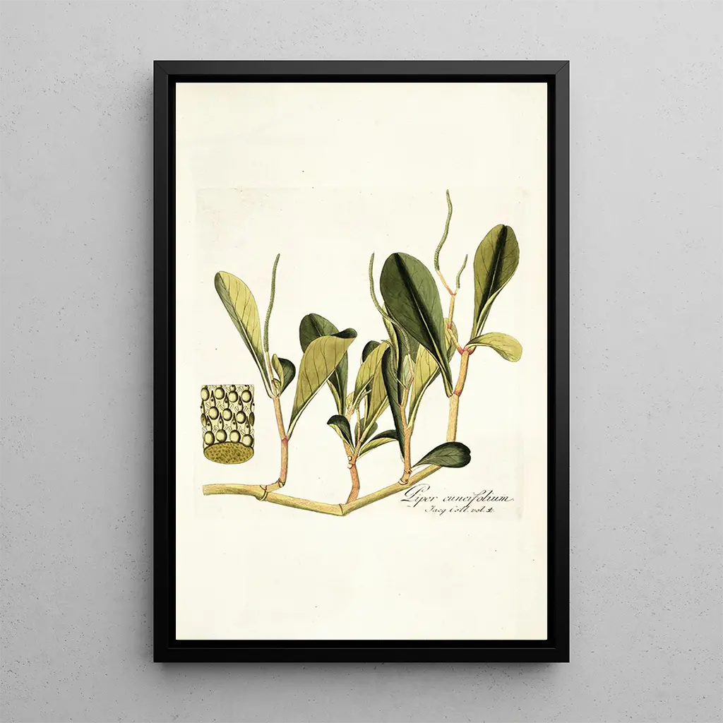 Piper cuneifolium -taidegrafiikan reproduktio on ihanteellinen sisustuselementti moderni- tai klassistiloihin. Olipa kyseessä olohuone, toimisto tai makuuhuone, tämä taulu lisää vihreyttä ja eleganssia. Tulostuslaatu takaa uskomattoman tarkkuuden alkuperäisiin yksityiskohtiin, ja sen esteettinen vetovoima tekee siitä vangitsevan keskipisteen. Sisällyttämällä tämän kankaan osaksi sisustustasi, tuot luonnon sisälle ja luot rauhoittavan ja inspiroivan ilmapiirin.