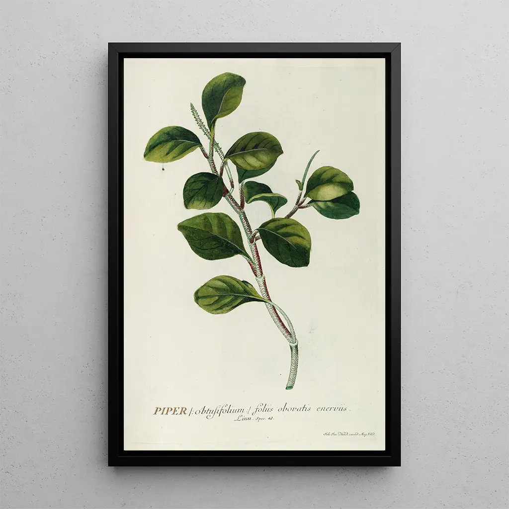 Piper-taidegrafiikan, Georg Dionysius Ehretin ikonisen teoksen, reproduktio johdattaa meidät kiehtovaan kasvitieteelliseen maailmaan. Lehtien ja varren yksityiskohtaiset yksityiskohdat sekoittuvat eloisien vihreiden palettiin, luoden sekä rauhoittavan että dynaamisen ilmapiirin. Taiteilijan käyttämä messinkilaser-tekniikka mahdollistaa luonnollisten tekstuurien hienovaraisuuden vangitsemisen, kun taas valo vaikuttaa pinnalla, herättäen tämän teoksen eloon. Jokainen tämän kankaan elementti kutsuu tarkkailemaan ja ihailemaan luonnon ihmeitä, ikään kuin voisi melkein tuntea kasvien tuoksun.