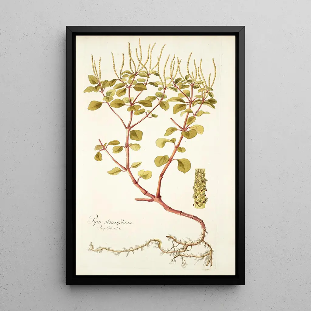 Nikolaus Joseph Freiherr von Jacquin, 1700-luvun kasvitieteilijä ja taiteilija, on näytellyt keskeistä roolia eksoottisten kasvien tutkimuksessa. Syntyjään Itävallasta, hän matkusti Etelä-Amerikkaan, missä keräsi näytteitä ja teki yksityiskohtaisia piirroksia. Hänen työnsä liittyy Valistuksen aikaan, jolloin tieteellinen uteliaisuus ja luonnon maailman tutkiminen olivat etusijalla. Jacquin vaikutti moniin aikansa kasvitieteilijöihin ja taiteilijoihin, ja hänen teoksensa ovat edelleen viitteellisiä kasvitieteellisessä kuvittamisessa. Piper obtusifoliumin taidegrafiikka todistaa hänen lahjakkuudestaan ja sitoutumisestaan tieteeseen ja taiteeseen.