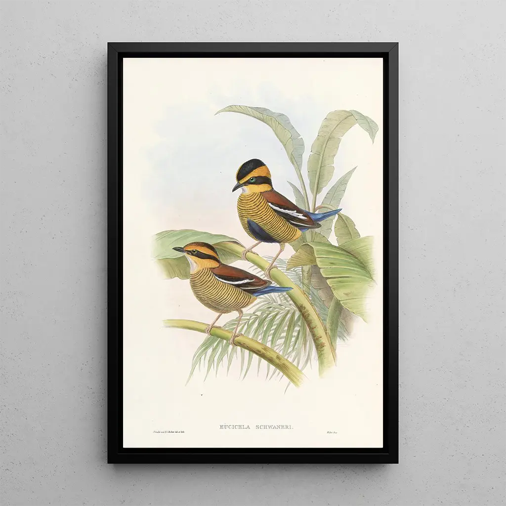John Gould, brittiläinen luonnontieteilijä ja kuvittaja 1800-luvulta, tunnetaan yhtenä aikansa merkittävimmistä lintutieteilijöistä. Hänen teoksensa, kuten taidegrafiikka Monografia Pittidae, todistavat hänen sitoutumisestaan dokumentoimaan lintujen faunaa tieteellisellä tarkkuudella. Aikansa tutkimusmatkoilta inspiroituneena Gould matkasi ympäri maailmaa keräten näytteitä ja ihastuen luonnon kauneuteen. Hänen tyylinsä, yhdistäen realismia ja estetiikkaa, merkitsi aikaa, jolloin taide ja tiede yhdistyivät. Työnsä ansiosta hän ei ainoastaan rikastuttanut ornitologian alaa, vaan jätti myös arvokkaan taiteellisen perinnön.