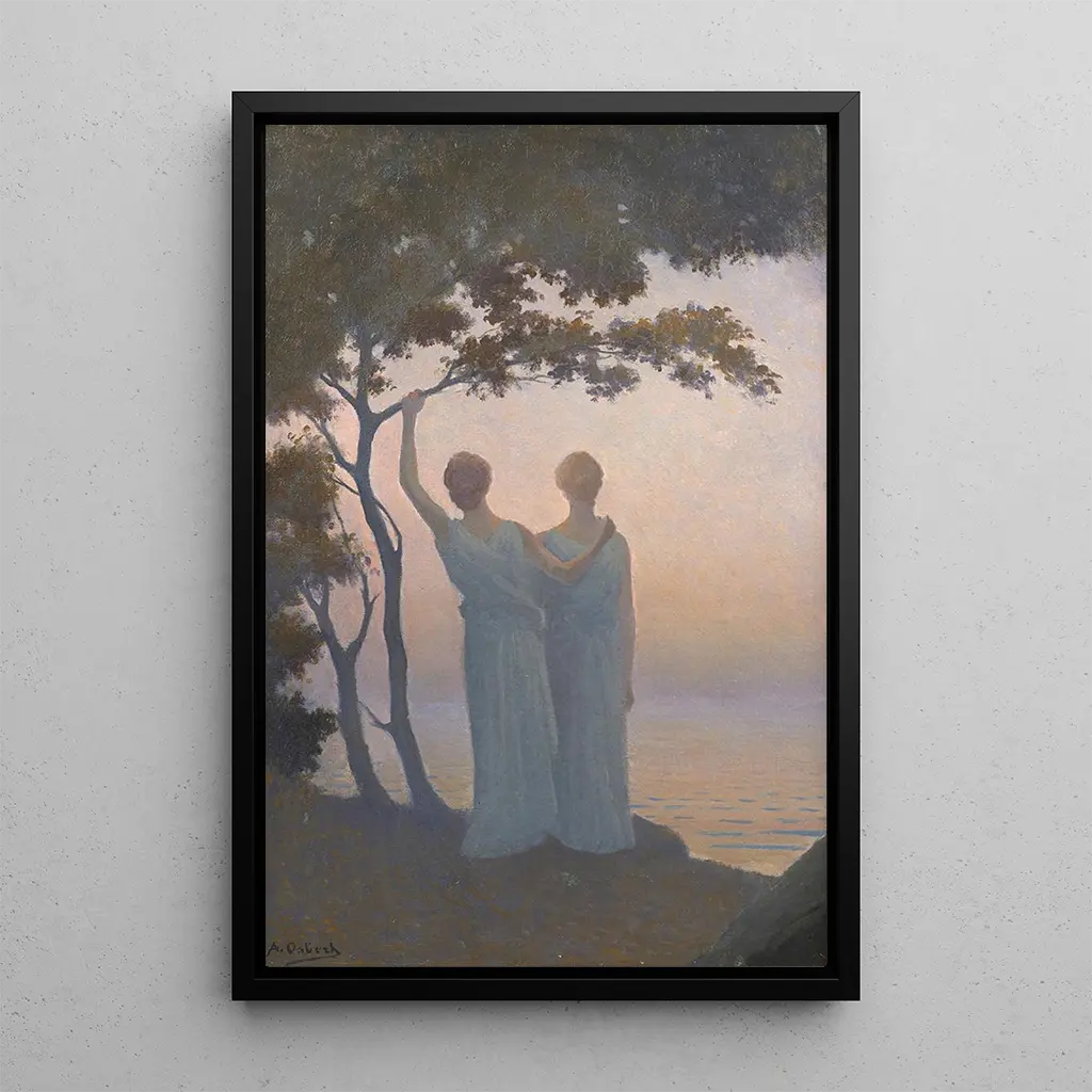 Contemplation : syvällisen rauhan syväluotaus Alphonse Osbertin taidegrafiikan reproduktio kuljettaa meidät rauhan ja pohdinnan maailmaan. Tämä teos erottuu pehmeillä sävyillään ja hienovaraisilla vivahteillaan, luoden rauhoittavan ilmapiirin. Taiteilijan tekniikka, joka hienovaraisesti yhdistää valon ja varjon, herättää henkiin eteerisiä, melkein kelluvia muotoja. Hahmot, jotka ovat syventyneet ajatuksiinsa, vaikuttavat keskustelevalta ympäröivän luonnon kanssa, kutsuen katsojan syvälliseen introspektioon. Jokainen sivellinvedos herättää rauhan tunteen, tehden tästä taulusta todellisen rauhan keitaan. Alphonse Osbert: symbolismin mestari Alphonse Osbert, ranskalaisen symbolismin merkittävä hahmo, onnistui vangitsemaan ihmismielen ytimen teoksissaan. Syntynyt vuonna 1857, hän sai vaikutteita taiteellisista liikkeistä kuten romantiikasta ja impressionismista, mutta kehitti oman ainutlaatuisen tyylinsä. Osbert tutki usein luonnon ja hengen maailmaa, pyrkien ilmaisemaan syviä tunteita teostensa kautta. Hänen työnsä merkitsi 1800-luvun loppua ja 1900-luvun alkua, aikaa jolloin taide uudistui ja avautui uusille tulkinnoille. Contemplation-taidegrafiikan reproduktio todistaa hänen kyvystään luoda vaikuttavia ilmapiirejä. Monipuolinen koristeellinen hankinta Valitsemalla Contemplation-taidegrafiikan reproduktion, valitset koriste-esineen, joka rikastuttaa sisustustasi. Olipa kyseessä olohuone, toimisto tai makuuhuone, tämä taulu tuo rauhan ja eleganssin tunnelman. Reproduktionsi laatu takaa uskollisuuden alkuperäisteoksen yksityiskohdille, jolloin voit nauttia Osbertin estetiikasta täysin rinnoin. Sen rauhoittavat värit ja pohdiskeleva tunnelma tekevät tästä taulusta harmonisen osan erilaisia sisustustyylejä, samalla ollen keskustelun keskipisteenä. Hemmottele itseäsi hetkellä rauhaa ja kauneutta tämän ajattoman teoksen kanssa.