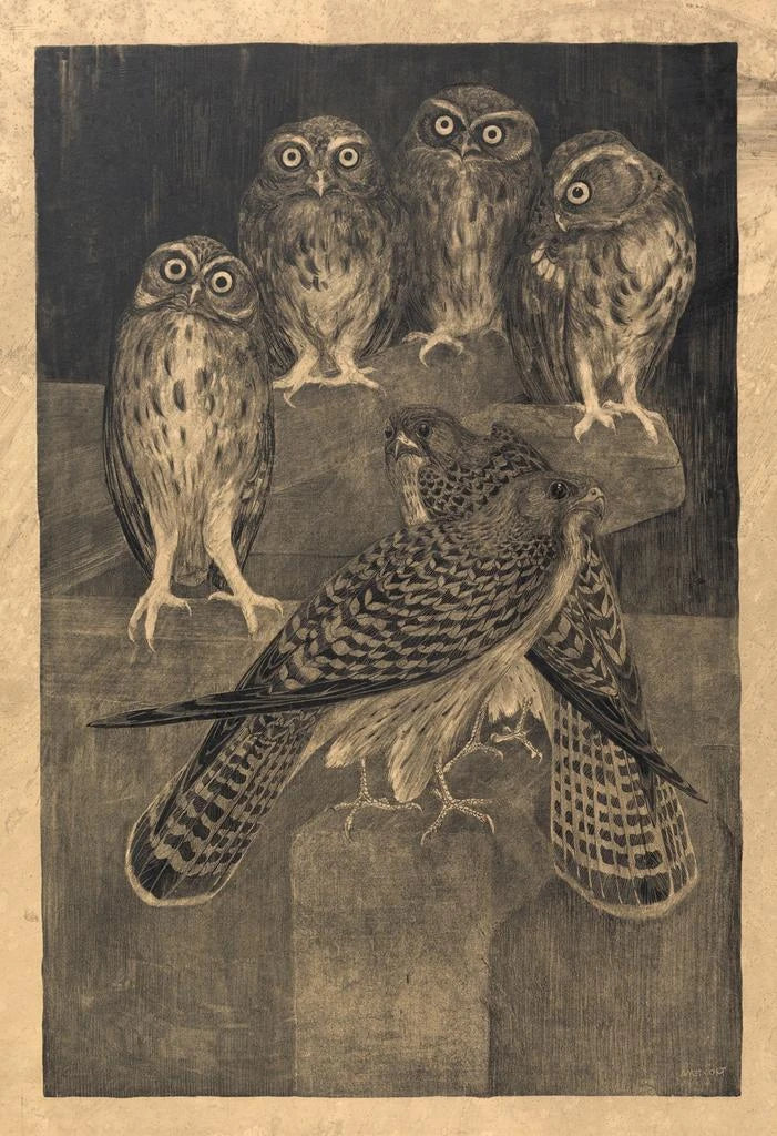 Taidetuloste | Ylänkö- ja pöllö- ja haukkapari - Theo van Hoytema