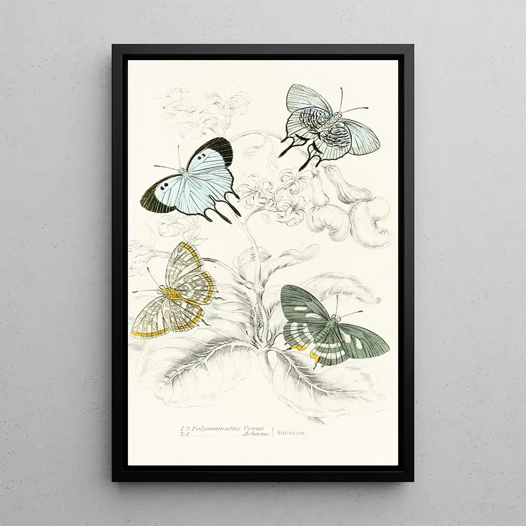 Taidegrafiikkaa Polyommatus Venus Polyommatus Achaeus, jonka on tehnyt James Duncan, kuvaa kiehtovaa harmoniaa värien ja muotojen välillä. Hienovaraiset sävyt perhosen siivissä korostuvat hienovaraisen valon leikkiessä, luoden lähes taianomaisen tunnelman. Jokainen yksityiskohta on huolellisesti toteutettu, mikä osoittaa taiteilijan kyvyn vangita näiden hyönteisten ohikiitävä kauneus. Tämä kangas kutsuu ihmettelemään ja mietiskelemään, juhlistaen biodiversiteetin rikkautta ympärillämme.