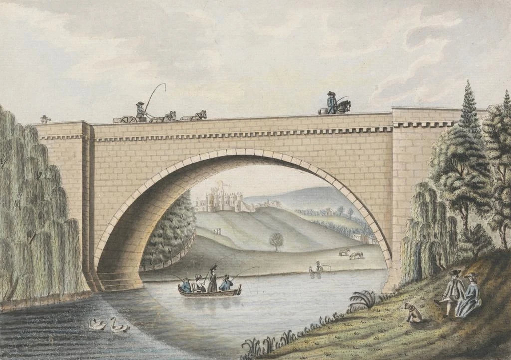 Le tableau "Pont en brique" de William Beilby nous transporte dans un paysage bucolique où la nature et l'architecture se rencontrent avec grâce. La composition est dominée par un pont majestueux, construit en briques, qui s'élève au-dessus d'une rivière paisible. Les couleurs chaudes et terreuses, mêlées à des touches de vert luxuriant, créent une atmosphère sereine et invitante. La technique de Beilby, caractérisée par des détails minutieux et une lumière douce, confère à l'œuvre une profondeur qui incite à la contemplation. Ce tableau est une véritable ode à la beauté des paysages anglais, où chaque élément semble vivre en parfaite harmonie.