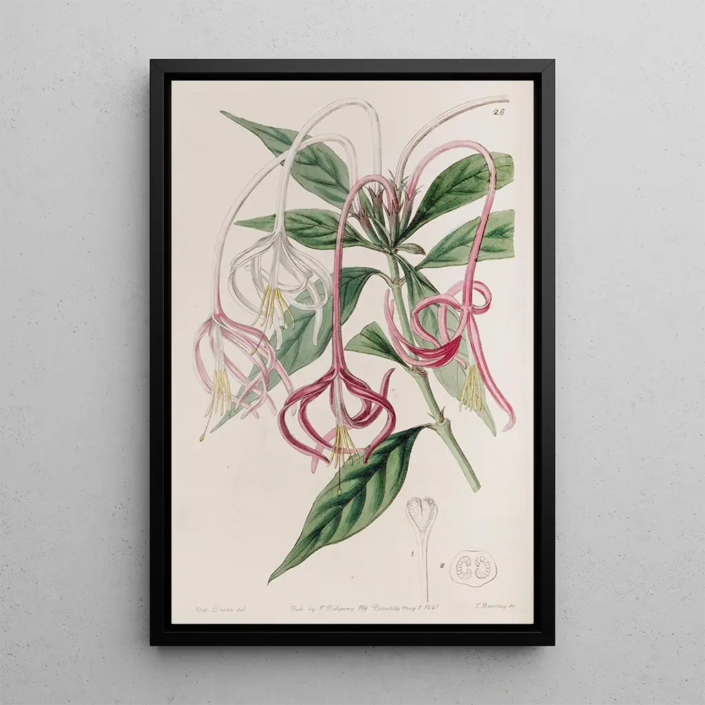 Posoqueria changeante, Sydenham Edwardsin kiehtova teos, paljastaa kirkkaiden värien paletin ja yksityiskohtien hienostuneisuuden, jotka vangitsevat katseen. Tämä taidegrafiikka korostaa tämän trooppisen kasvin ainutlaatuista kauneutta, jonka kukat näyttävät värähtelevän energian voimasta. Keltaisen, punaisen ja vihreän sävyt sekoittuvat harmonisesti, luoden elävän ja iloisen ilmapiirin. Edwardsin käyttämä vesiväritekniikka herättää tämän kankaan eloon, kutsuen katsojan tutkimaan luonnon ihmeitä taiteellisen prisma kautta.