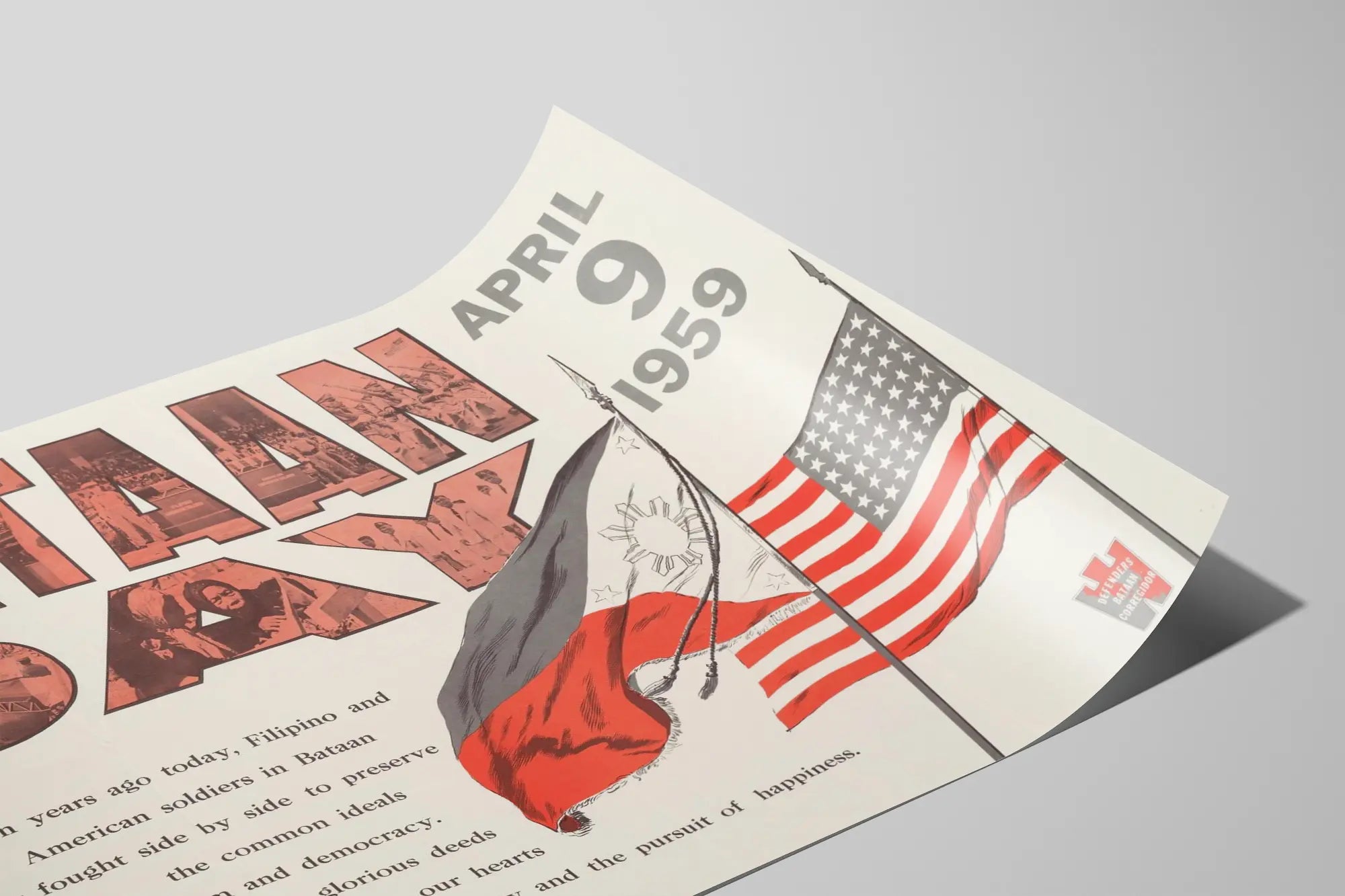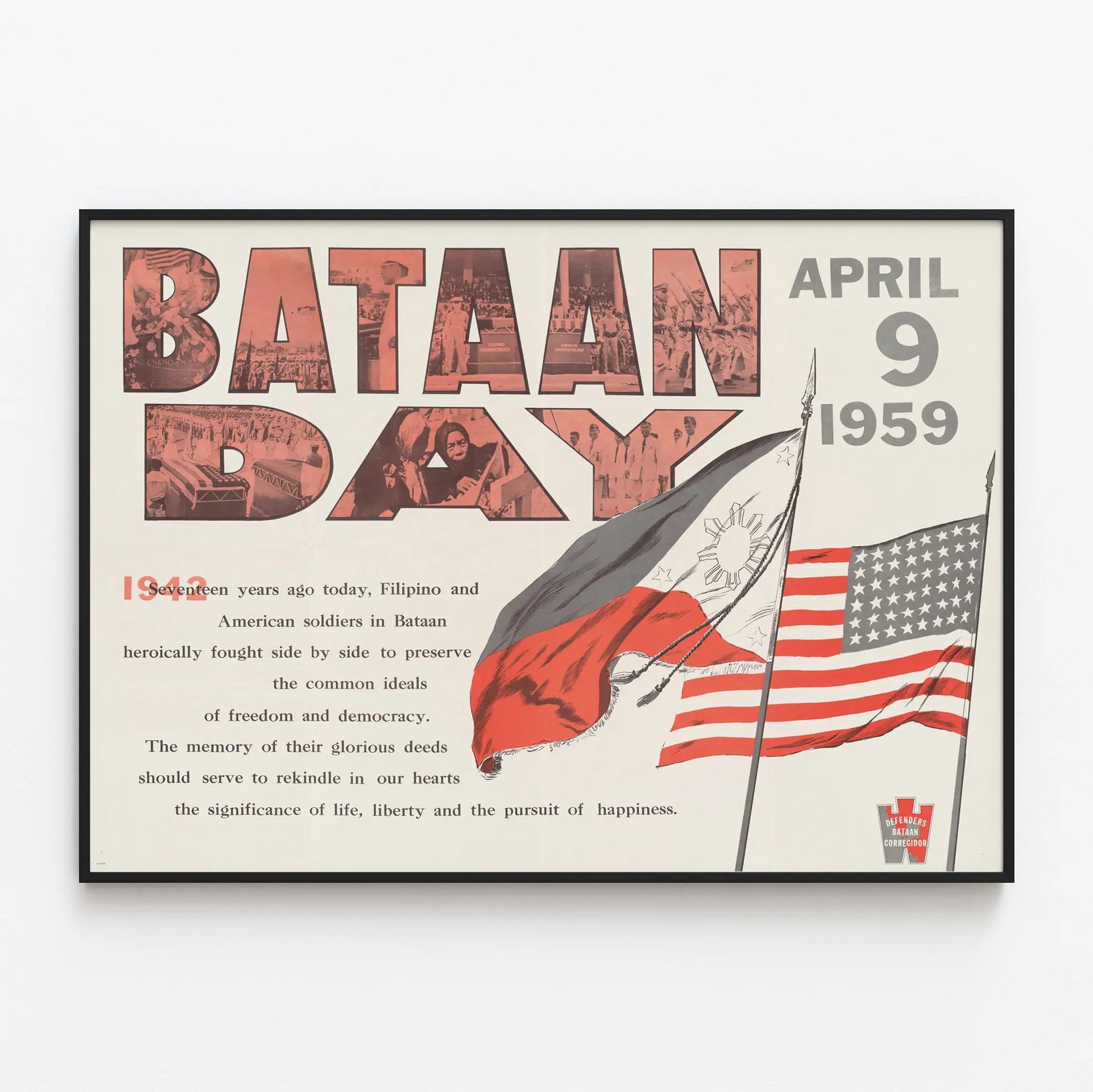 Bataan-päivän 1959 muistoposter - historiallinen seinäkoriste