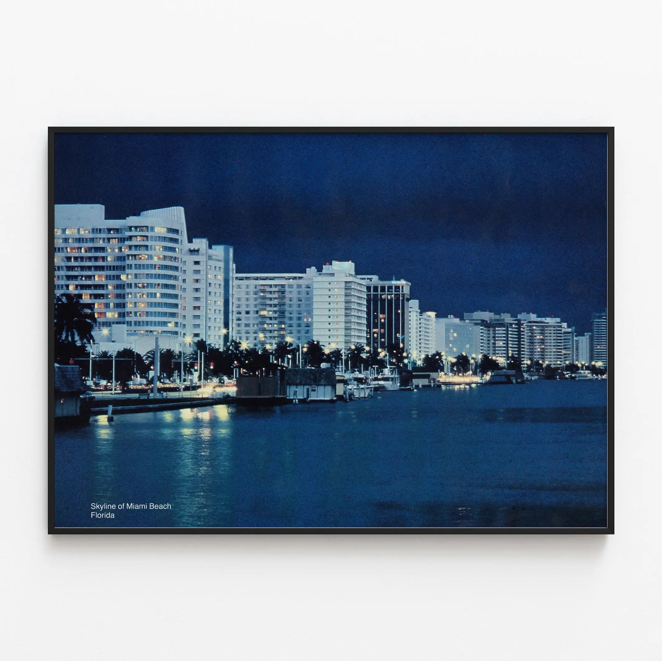 Tutustu tähän seinäkoristejulisteeseen, joka esittää Miamin rannan horisonttia Floridassa, valaistuna auringonlaskun aikaan. Tämä juliste korostaa moderneja ja tyylikkäitä rakennuksia, jotka reunustavat rannikkoa, heidän hohtavat valonsa heijastuen rauhallisen kanavan tai lahden veteen. Täydellinen lisäämään kaupunkimaista ja nykyaikaista tunnelmaa sisätiloihisi, tämä juliste tarjoaa rauhoittavan yökohtauksen, jossa tähdetön taivas kontrastoi katuvalojen ja ikkunanvalojen säihkeen kanssa.