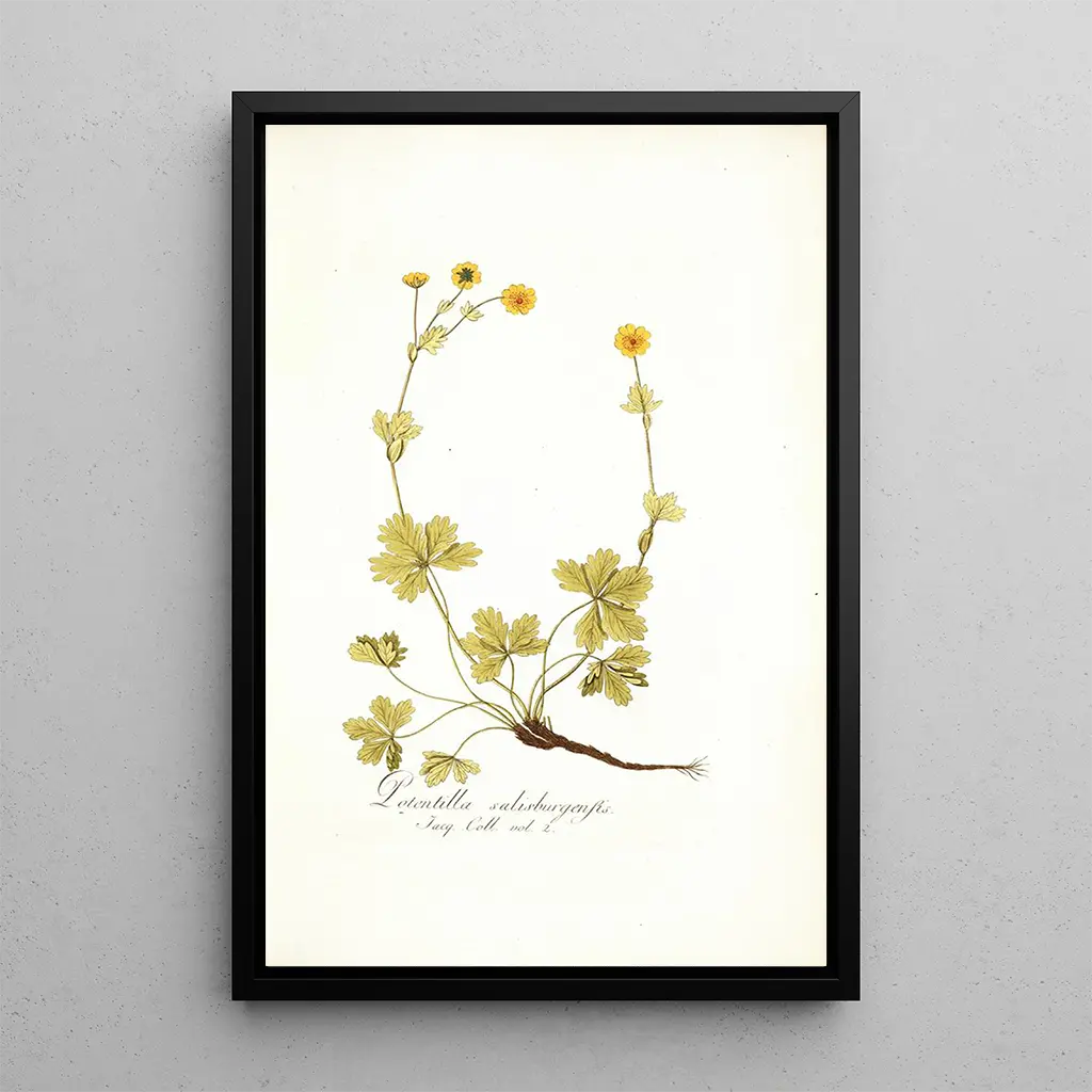 La taidegrafiikka de Potentilla salisburgensis, réalisée par Nikolaus Joseph Freiherr von Jacquin, syöksyy meidät herkkään kukkivaan maailmaan. Tämä teos, joka on täynnä yksityiskohtia ja kirkkaita värejä, kuvaa tämän kasvin haurasta kauneutta. Vihreän ja keltaisen sävyt sekoittuvat harmonisesti, kun taas taiteilijan tarkat piirteet vangitsevat lehtien tekstuurin ja kukkien hienostuneisuuden. Tämä kangas huokuu rauhoittavaa ja inspiroivaa tunnelmaa, kutsuen tarkkailemaan luontoa huolellisesti.