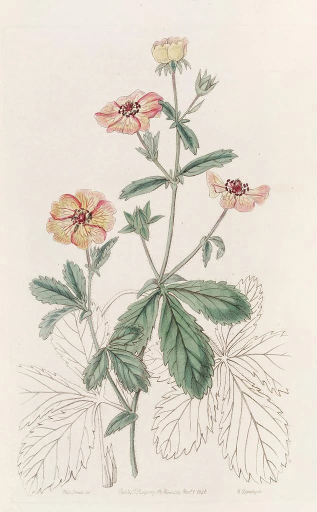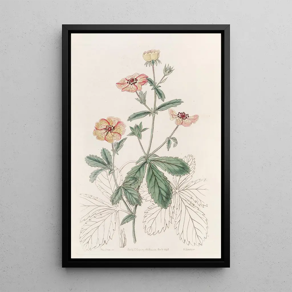 Sydenham Edwardsin taidegrafiikka "Potentille bicolore" on elävä kuvaus tästä herkästä kasvista. Sen kirkkaat keltaiset kukat ja rehevät vihreät lehdet välittävät iloa ja elinvoimaa. Vesiväritekniikka, joka on sovellettu huolellisesti, mahdollistaa terälehtien ja lehtien tekstuurin vangitsemisen, luoden lähes kosketeltavan tunnelman. Jokainen yksityiskohta on huolellisesti esitetty, kutsuen katsojan arvostamaan luonnon ohikiitävää kauneutta. Tämä taidegrafiikka on todellinen juhla luonnon kasvistolle, tuoden väriä ja eloa jokaiseen tilaan.