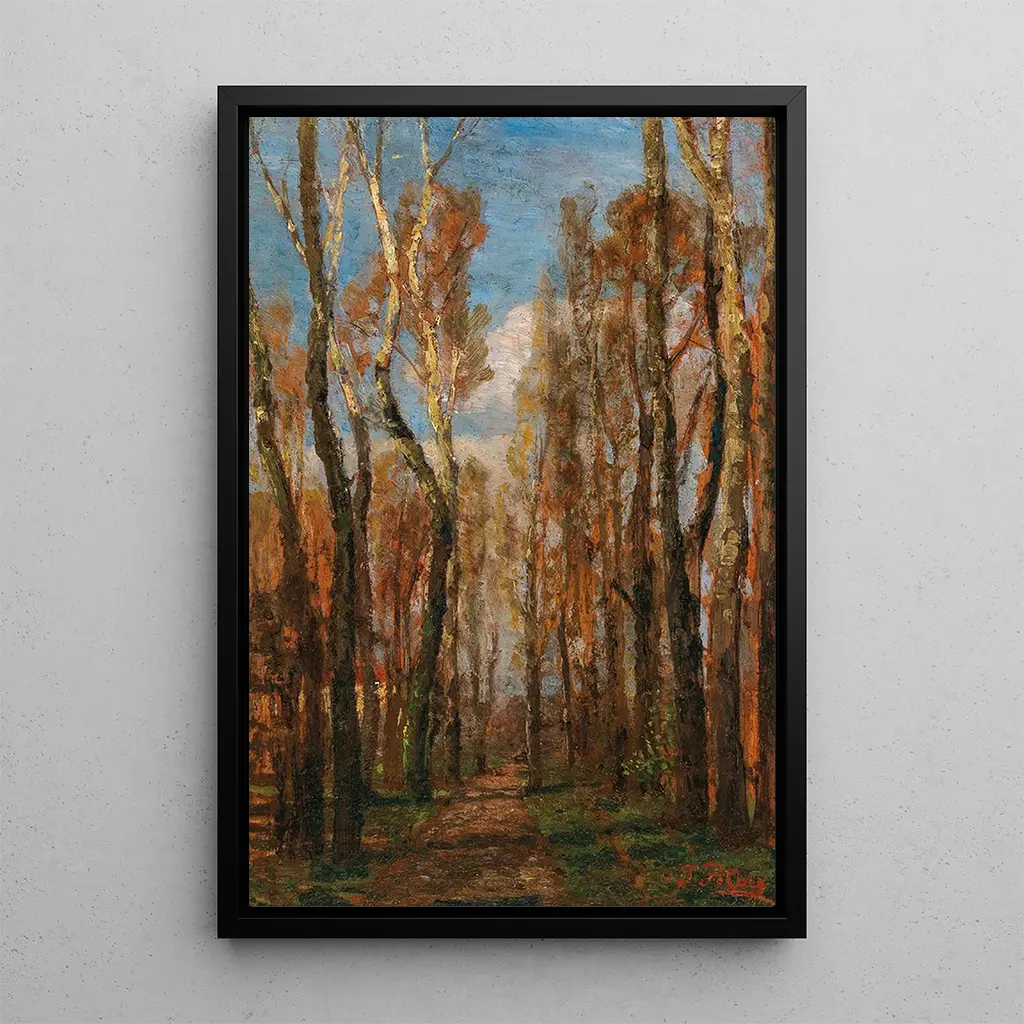 Tina Blau'n taidegrafiikka "Paysage du Prater" vie meidät maailmaan, jossa luonto kukoistaa kirkkaan taivaan alla. Puiden vihreän sävyt sekoittuvat auringonlaskun kultaisiin kosketuksiin, luoden rauhallisen ja lämpimän tunnelman. Taiteilijan tekniikka, joka käyttää eloisia ja ilmeikkäitä siveltimen vetoja, herättää tämän Wienin ikonisen maiseman eloon. Jokainen elementti, lehdistä veden heijastuksiin, tuntuu värähtelevän energian voimasta, kutsuen katsojan rauhalliseen ja immersiiviseen pohdintaan. Tämä taidegrafiikka on todellinen ylistys luonnonkauneudelle, vangiten hetkessä katoavan olemuksen.