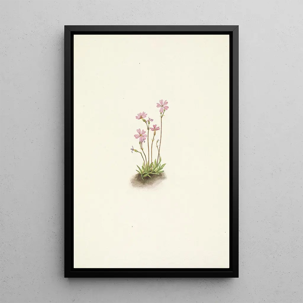 Taidegrafiikka Primevère de l'Alberta, tai Primula maccalliana, teoksesta Mary Vaux Walcott, herättää kevään pehmeyden ja raikkauden tunteen. Pastellivärisin sävyin roosa ja keltainen tämä taulu vangitsee kukinnan olemuksen, luoden rauhoittavan ja iloisen ilmapiirin. Walcottin vesiväritekniikka mahdollistaa lehtien keveyden ja varjojen hienovaraisuuden kuvaamisen, luoden teoksen, joka tuntuu lähes elävältä. Jokainen kukka on kunnianosoitus luonnon katoavalle kauneudelle, kutsuen mietiskelyyn ja ihailuun.