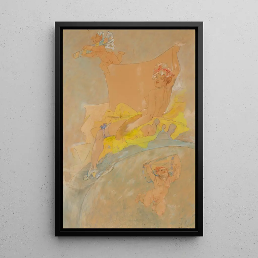 Tämä taidegrafiikka Projektin julisteesta Félicien Ropsilta sukelsi visuaaliseen kiehtovaan maailmaan. Elävät värit ja rohkeat linjat lomittuvat luoden dynaamisen koostumuksen, joka vangitsee heti katseen. Rops, julisteen mestari, käyttää aikansa innovatiivisia painotekniikoita, yhdistäen litografian ja piirtämisen. Tämän teoksen välittämä tunnelma on sekä iloinen että provosoiva, heijastaen 1800-luvun lopun vapaata ja avantgardistista henkeä. Jokainen tämän kankaan yksityiskohta kertoo taiteilijan intohimosta kauneuteen ja estetiikkaan, kutsuen katsojan uppoutumaan hänen maailmaansa.