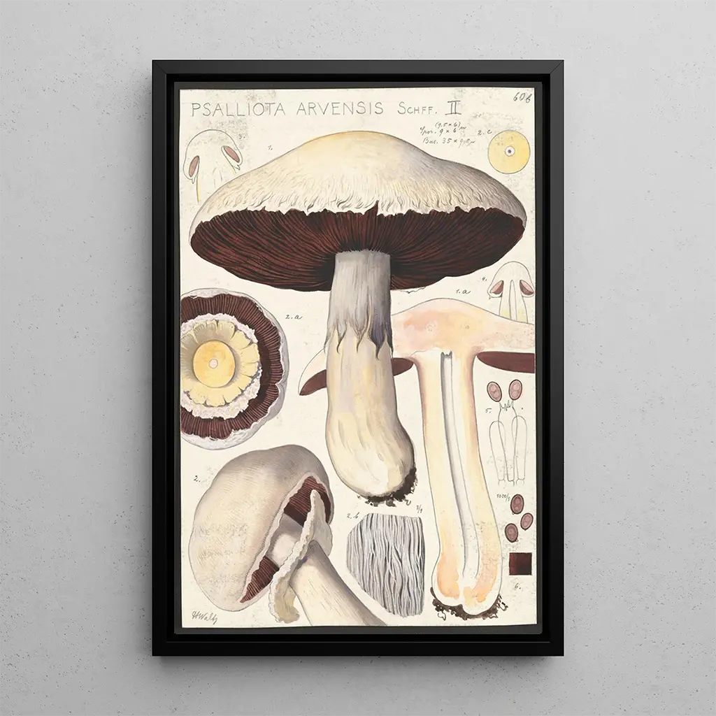 Taidegrafiikan Psalliota Arvensis Schff II -taidegrafiikka on erinomainen koristeellinen kappale rikastuttamaan sisustustasi, olipa kyseessä olohuone, toimisto tai makuuhuone. Sen tulostuslaatu ja alkuperäisten yksityiskohtien uskollisuus tekevät siitä houkuttelevan valinnan taiteen ja luonnon ystäville. Tämä taulu, jonka vetovoimainen estetiikka tarjoaa, lisää raikkautta ja rauhaa mihin tahansa tilaan. Sisällyttämällä tämän kankaan osaksi sisustustasi, annat ympäristöllesi kutsun tarkkailemaan ja ihmettelemään luonnon maailman kauneutta.