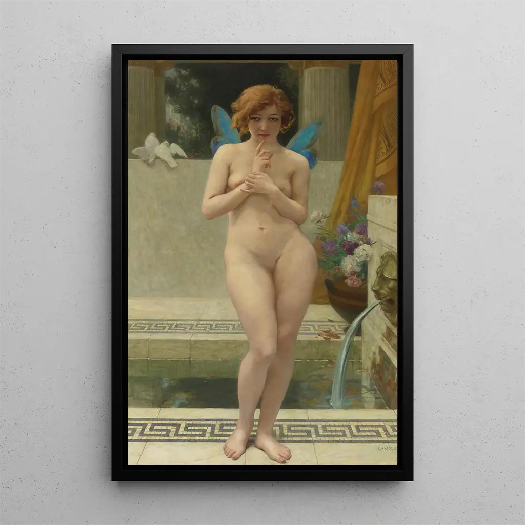 Guillaume Seignac, neo-klassismin merkittävä hahmo, on onnistunut vakiinnuttamaan asemansa kyvyllään kuvata naiskauneutta. 1900-luvun alussa aktiivinen taiteilija, joka sai vaikutteita taidehistorian suurmestareilta, mutta kehitti samalla oman tyylinsä, joka yhdistää sensuellisuutta ja eleganssia. Hänen teoksensa, usein mytologian ja runouden inspiroimia, todistavat ajasta, jolloin taide oli kauneuden juhlaa. Psyché à la fontaine on yksi hänen ikonisimmista teoksistaan, joka osoittaa hänen taitonsa vangita syviä tunteita naiskauneuden esitysten kautta.