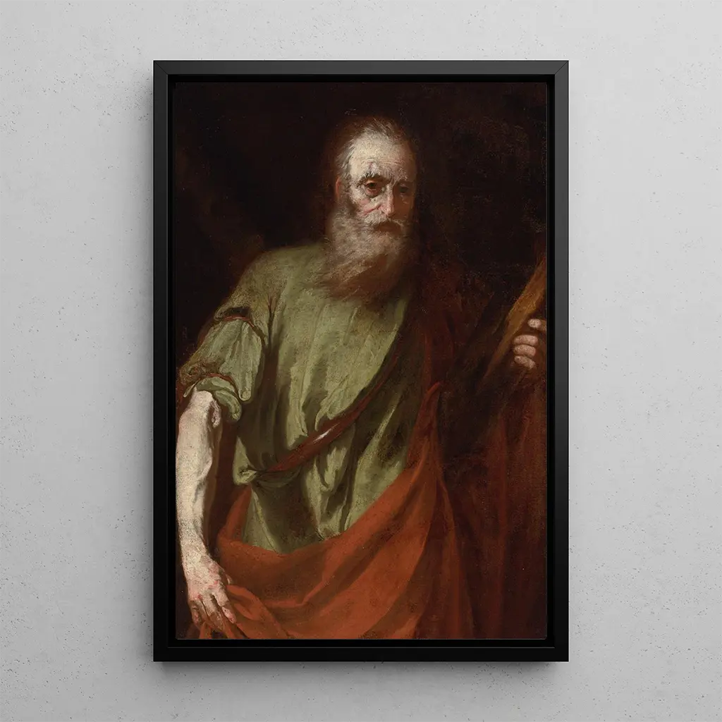L taidegrafiikka Saint André, Napolilaisen koulukunnan merkittävä teos, herättää rauhan ja hartauden tunnelman. Lämmittävät värit, pääasiassa kultaiset sävyt ja syvät siniset, luovat vaikuttavan kontrastin, joka kiinnittää katseen. Öljyvärimaalauksen tekniikka, joka on hallittu hienovaraisesti, mahdollistaa yksityiskohtien tarkkuuden kasvoissa ja pyhien vaatteissa. Teos säteilee mystistä auraa, kutsuen mietiskelyyn ja henkiseen pohdintaan. Jokainen sivellinvedos tuntuu hengittävän uskoa, tarjoten ikkunan pyhään maailmaan.