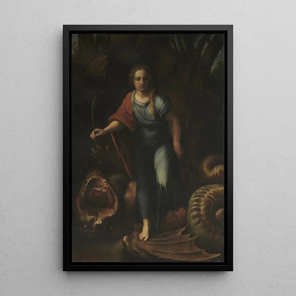 Sainte Marguerite, jonka Raphaël on maalannut, on elävä teos, joka kuvaa nuoren naisen voimaa ja päättäväisyyttä vastoinkäymisiä vastaan. Tässä taulussa kirkkaat värit ja yksityiskohtaiset yksityiskohdat luovat hartauden ja urheuden ilmapiirin. Kompositio korostaa Margueriten keskushahmoa, jota ympäröivät symboliset elementit vahvistavat hänen uskon sanomaansa. Hänen rauhallinen ilmeensä, joka kontrastoi lohikäärmeen uhan kanssa, viittaa syvään henkisyyteen ja horjumattomaan rohkeuteen.