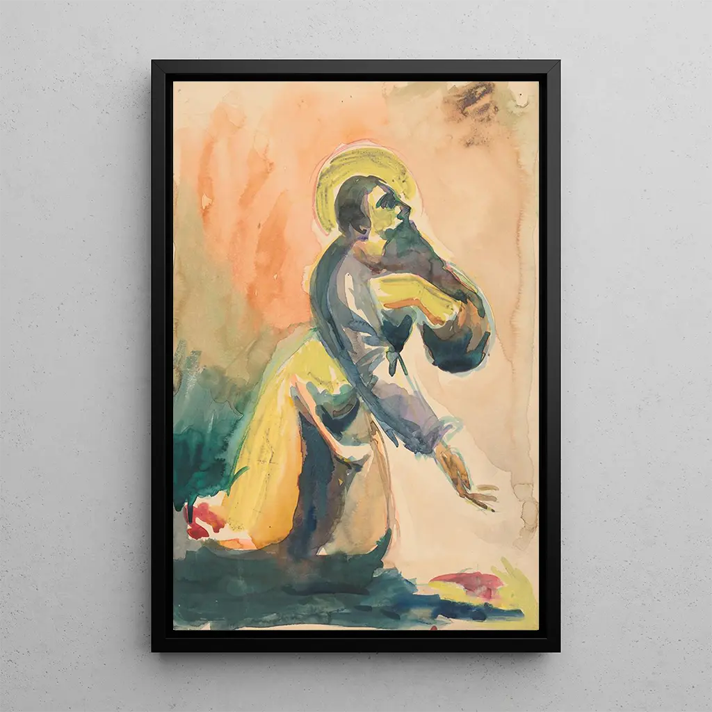 "Saint priant" -taidegrafiikan reproduktio on ihanteellinen sisustuselementti rikastuttamaan kotiasi, olipa kyseessä olohuone, toimisto tai makuuhuone. Sen tulostuslaatu ja alkuperäisteoksen yksityiskohtien tarkkuus tekevät siitä viisaan valinnan taiteen ystäville. Sisällyttämällä tämän taulun sisustukseesi tuot lisää rauhaa ja syvyyttä tilaan. Tämän kankaan esteettinen viehätys, hienovaraisine sävyineen ja henkisen tunnelmansa ansiosta, miellyttää vieraitasi ja luo pohdintaan ja meditointiin sopivan ilmapiirin.