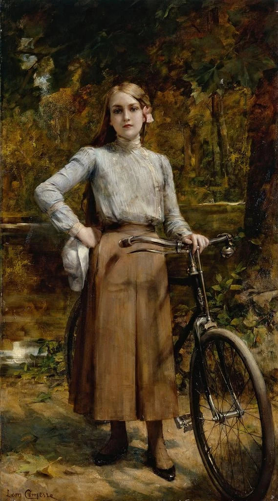 Léon François Comerre, joka toimi 1800-luvun lopulla ja 1900-luvun alussa, tunnetaan realistisesta tyylistään, joka on täynnä runollisuutta. Hän kouluttautui Pariisin taidekouluissa ja inspiroitui impressionistien mestareista, kehittäen samalla oman taiteellisen herkkyytensä. Hänen teoksensa, usein keskittyen arkipäivän kohtauksiin, osoittavat erityistä huomiota yksityiskohtiin ja valoon. "Bicyclette au Vésinet" sijoittuu aikaan, jolloin luonto ja vapaa-aika saavat yhä suuremman roolin taiteessa, heijastaen yhteiskunnan pyrkimystä keveyteen ja kauneuteen.