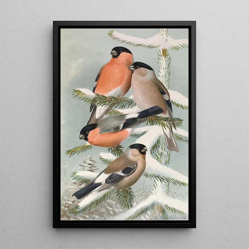 La taidegrafiikka Pyrrhula pyrrhula, joka tunnetaan myös nimellä iso-töyhtö, herättää tämän linnun herkkää kauneutta. Sen kirkkaat värit, erityisesti sen räiskyvä punainen höyhenpuku, houkuttelevat katseen ja kutsuvat ihailuun. Johann Friedrich Naumann, tarkalla tekniikallaan ja yksityiskohtiin kiinnitettynä, onnistuu vangitsemaan tämän linnun olemuksen. Kankaan tunnelma on täynnä rauhaa, ikään kuin voisi kuulla luonnon melodisen laulun. Jokainen sivellinvedos tuntuu sykähdyttävän elämää, kunnioittaen lintujen loistokkuutta.