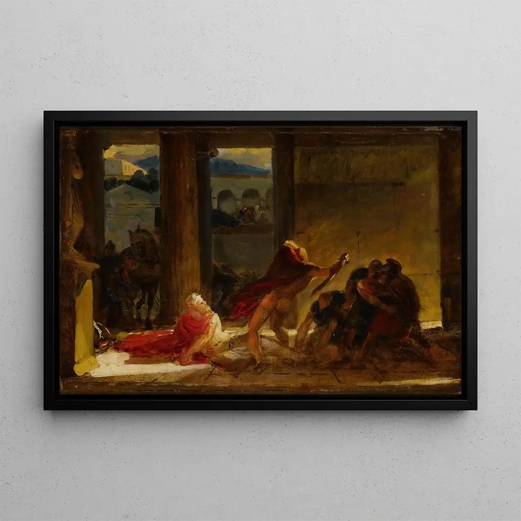 Valitsemalla "La mort de Pyrrhus" -taidemaalauksen reproduktion sisustukseesi, teet valinnan keskeisestä teoksesta, joka herättää ihailua. Olipa kyseessä olohuone, toimisto tai makuuhuone, tämä taulu lisää eleganssia ja syvyyttä sisustukseesi. Reproduktionen laatu takaa alkuperäisten yksityiskohtien uskollisuuden, mahdollistaen koko teoksen emotionaalisen voiman kokemisen. Sen esteettinen vetovoima tekee tästä kankaasta ei vain koriste-elementin, vaan myös kiehtovan keskustelunaiheen, rikastuttaen elinympäristöäsi ajattomalla tarinalla.