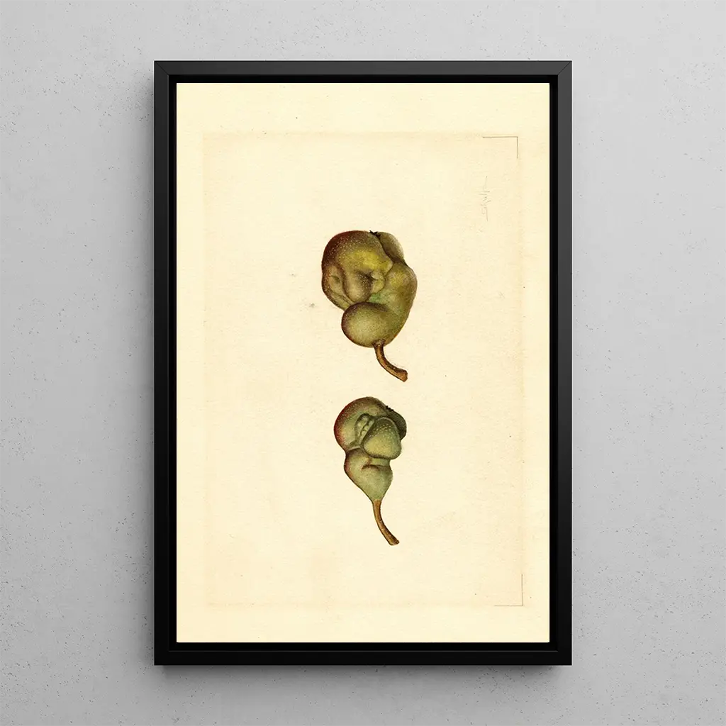 Tässä Pyrus communis Seckel -taidegrafiikan reproduktiossa James Marion Shull vangitsee päärynän kauneuden, joka symboloi makeutta ja herkuttelua. Kultaiset ja vihreät sävyt sekoittuvat harmonisesti, kun taas valo leikkii hedelmän sileällä pinnalla, luoden lähes kosketeltavan vaikutelman. Kompositio, joka keskittyy hedelmään, luo rauhan ja mietiskelyn tunnelman, kutsuen katsojan arvostamaan luonnon yksinkertaisuutta. Jokainen yksityiskohta, pienistä ihon epätäydellisyyksistä hehkuviin heijastuksiin, kertoo taiteilijan teknisestä hallinnasta, joka onnistuu tuomaan eloa hänen aiheeseensa.