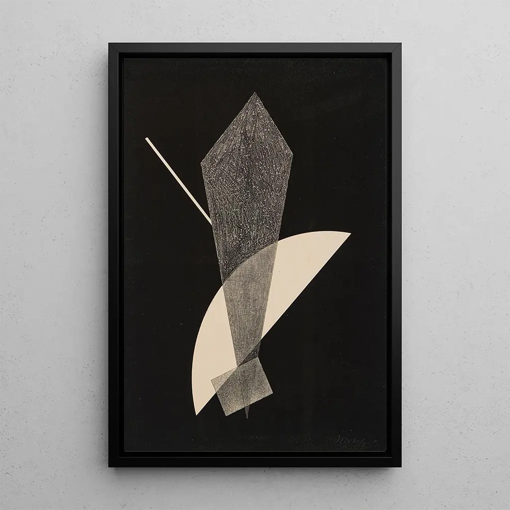 Kohteessa "Rakennus V" László Moholy-Nagy johdattaa meidät maailmaan, jossa geometria ja valo kietoutuvat yhteen kiehtovalla tarkkuudella. Kulmikkaat muodot, usein yksiväriset, luovat visuaalisen dialogin, joka houkuttelee katsetta ja stimuloi mielikuvitusta. Erilaisista materiaaleista koostuvan kollaasitekniikan ja kokoamisen ansiosta teoksella on ainutlaatuinen tekstuuri, kun taas valon käyttö näyttelee keskeistä roolia, muuttaen tilavuuksien ja tilojen havaintoa. Tämä teos heijastaa Bauhausin avantgardistista henkeä, jossa jokainen elementti on huolellisesti suunniteltu herättämään liikkeen ja tasapainon tunteen.