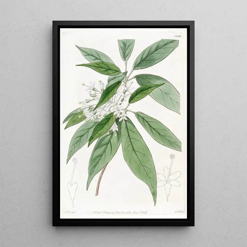Taidegrafiikka "Reevesia kukkia sisältävä thyrse" on erinomainen koristeellinen valinta, joka kaunistaa mitä tahansa tilaa, olipa kyseessä olohuone, toimisto tai makuuhuone. Tulostuslaatu takaa uskollisuuden väreihin ja yksityiskohtiin alkuperäisteoksessa, jolloin voi arvostaa Edwardsin luoman teoksen hienostuneisuutta. Tämän kangasmaalauksen esteettinen vetovoima tekee siitä keskeisen elementin, joka kiinnittää katseen ja herättää keskusteluja. Sisällyttämällä tämän taidegrafiikan osaksi sisustustasi, tuot luonnon ja eleganssin kosketuksen, samalla juhlistaen kasvi- ja taidetta parhaimmillaan.