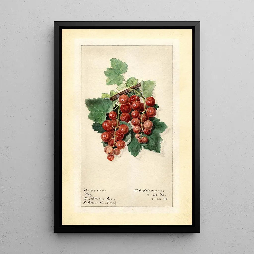 La taidegrafiikka Ribes Fay Royal Charles Steadmanista herättää eloon värikkään maailman, jossa luonto ilmaisee itseään harvinaisen voimakkaasti. Loistavat värit, aina rehevistä vihreistä syviin punaisiin, sekoittuvat harmonisesti luoden sekä iloisen että rauhoittavan ilmapiirin. Steadmanin tekniikka, joka yhdistää akvarellin ja öljyn, antaa kokonaisuudelle keveyttä, ikään kuin elementit leijuisivat ilmassa. Jokainen yksityiskohta, hienovaraisista lehdistä mehukkaihin hedelmiin, on toteutettu tarkasti, kutsuen katsojan sukeltamaan tähän lumoavaan tauluun.