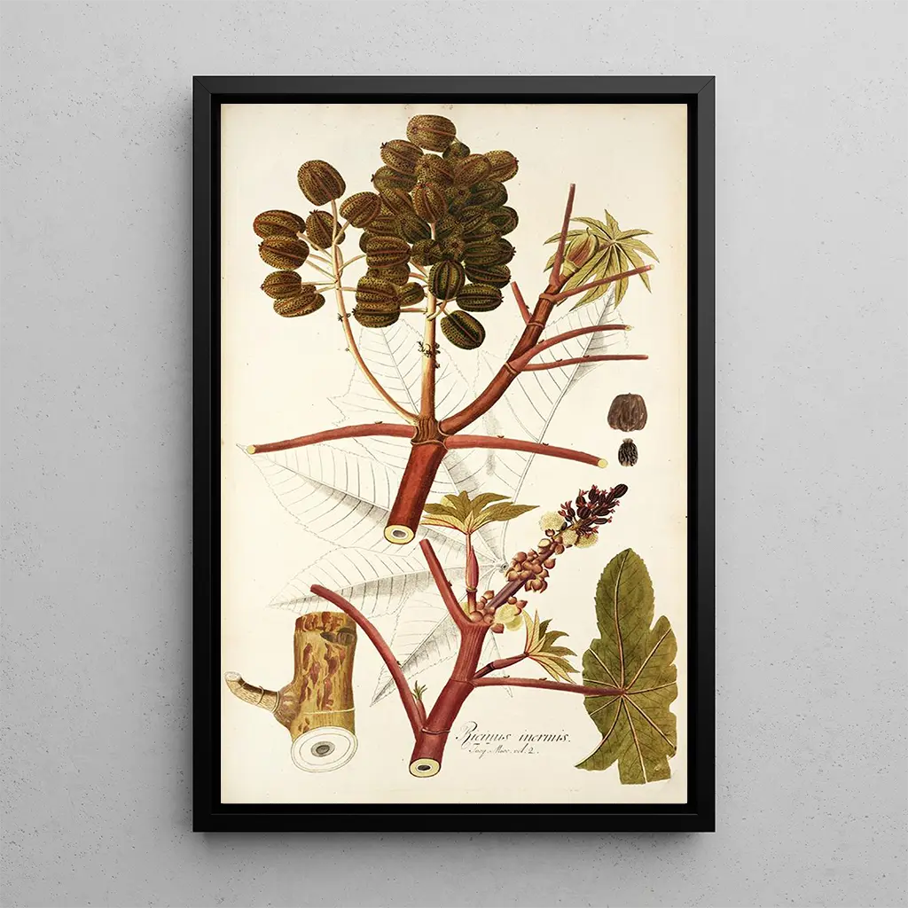 Ricinus inermis -taidegrafiikan reproduktio on koristeellinen valinta, joka kaunistaa minkä tahansa tilan, olipa kyseessä olohuone, toimisto tai makuuhuone. Sen poikkeuksellinen tulostuslaatu ja visuaalinen vetovoima tekevät siitä keskeisen osan, joka kiinnittää katseen. Sisällyttämällä tämän taulun sisustukseesi, tuot esiin eksoottisuuden ja hienostuneisuuden vivahteita, samalla kun kunnioitat Jacquinin teosta. Tämä kangas ei ole vain esteettinen lisä, vaan myös luonnon kauneuden heijastus, ihanteellinen kasvitieteen ja taiteen harrastajille.