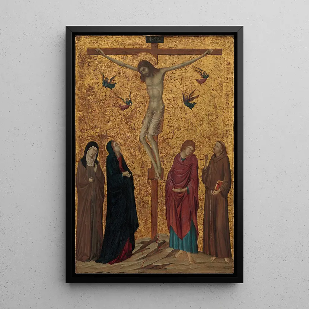 Ugolino da Sienan La Crucifixion on teos, joka vangitsee kärsimyksen ja lunastuksen olemuksen. Tässä koskettavassa esityksessä tummat ja maanläheiset värit hallitsevat, luoden vakavan ja mietiskelevän ilmapiirin. Kompositio, keskittyen ristiinnaulittuun Kristukseen, on ympäröity Neitsyt Marian ja Pyhän Johanneksen hahmoilla, joiden ilmeet ovat täynnä kipua ja myötätuntoa. Taiteilijan tekniikka, yhdistäen temperaa ja kultauksia, antaa tälle taululle henkisen syvyyden, kutsuen katsojan meditatiiviseen pohdintaan uhrista ja uskosta.