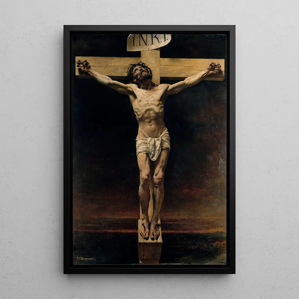 Le Christ en croix : une représentation poignante de la souffrance "Le Christ en croix" de Léon Bonnat est une œuvre qui saisit par sa profondeur émotionnelle et sa puissance visuelle. La composition, centrée sur la figure du Christ, évoque une atmosphère de douleur et de sacrifice. Les couleurs sombres et les ombres accentuent le drame de la scène, tandis que la technique de Bonnat, caractérisée par un réalisme saisissant, donne vie à chaque détail. Les expressions des personnages environnants, mêlant compassion et désespoir, renforcent l'impact de cette représentation, faisant de cette toile une véritable méditation sur la souffrance humaine et la rédemption. Léon Bonnat : un artiste engagé dans la représentation de l'humanité Léon Bonnat, figure emblématique du XIXe siècle, a su marquer son époque par des œuvres qui allient technique et émotion. Influencé par les maîtres anciens, il a développé un style qui mêle réalisme et idéalisation, lui permettant de traiter des thèmes profonds tels que la souffrance et la spiritualité. "Le Christ en croix" s'inscrit dans une période où l'art religieux revêt une importance particulière, reflétant les préoccupations spirituelles de son temps. À travers cette œuvre, Bonnat témoigne de son engagement envers des sujets qui touchent à l'essence même de l'humanité. Une acquisition décorative aux multiples atouts La reproduction de "Le Christ en croix" est une pièce maîtresse qui saura enrichir votre décoration intérieure. Que ce soit dans un espace de méditation, un bureau ou un salon, cette toile apportera une dimension spirituelle et contemplative à votre environnement. Sa qualité de taidegrafiikka garantit une fidélité aux nuances et aux détails de l'œuvre originale, permettant de ressentir toute la force de son message. Avec son attrait esthétique, cette œuvre devient un élément de conversation captivant, invitant à la réflexion et à l'échange autour de la foi et de la condition humaine.