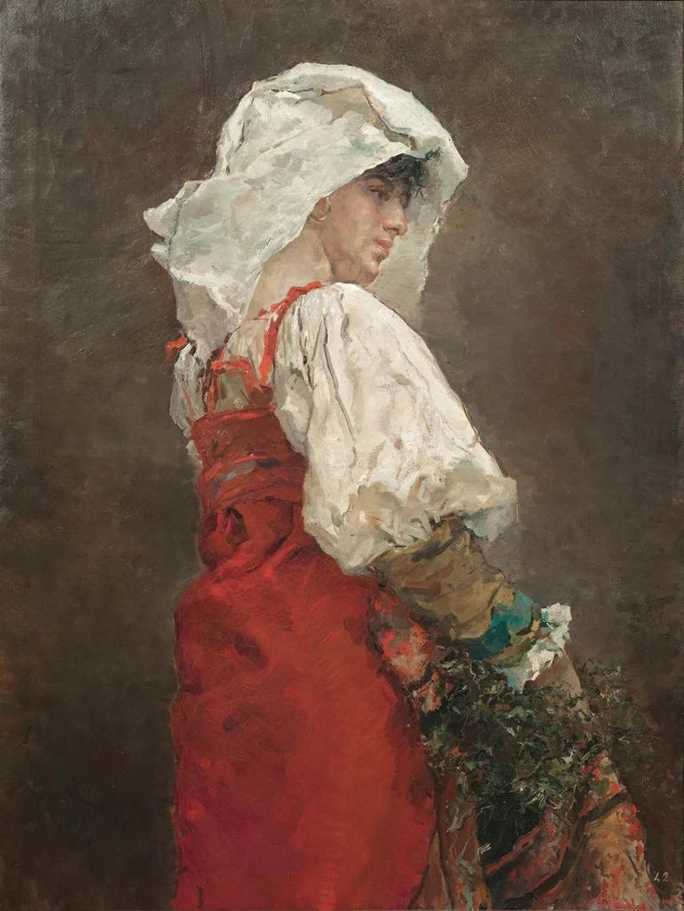 Reproduktio Paysan à Rome - Arcadi Mas i Fondevila – Kiehtova johdanto Luovan taiteen maailmassa jotkut teokset onnistuvat vangitsemaan aikakauden olemuksen, ylittäen pelkät esitykset ja herättäen syviä tunteita. "Paysan à Rome" Arcadi Mas i Fondevila on yksi näistä ikonillisista teoksista, jotka koostumuksensa ja aiheensa ansiosta kuljettavat meidät 1900-luvun alun maaseudun elämän ytimeen. Tämä maalaus, sekä koskettava että kuvaileva, kutsuu meitä pohtimaan ihmisen ja ympäristön välistä suhdetta samalla kun se valottaa ajan yhteiskunnallisia todellisuuksia. Katsellessamme tätä teosta katsoja uppoutuu välittömästi melankolian ja kauneuden täyttämään ilmapiiriin, jossa jokainen sivellinvedos tuntuu kertovan unohtuneen tarinan. Tyylin ja teoksen ainutlaatuisuuden Arcadi Mas i Fondevilan tyyli erottuu kyvystään yhdistää realismi ja impressionismi, luoden rikkaan teoksen sävyjä ja tekstuureja. "Paysan à Rome" on luonteeltaan lämminväriinen ja maanläheinen, mikä viittaa sekä maataloustyön karuuteen että Välimeren maisemien pehmeyteen. Valon leikit, taitavasti hallittuina, antavat kohtaukselle lähes ajattoman tunnelman, jossa aika vaikuttaa pysähtyneen. Taiteilija onnistuu vangitsemaan maalaisen eleet, ilmeen ja herkkäyden ihmisen ja luonnon välisessä vuorovaikutuksessa. Jokainen yksityiskohta, oli kyseessä sitten päähenkilön kuluneet vaatteet tai taustan elementit, tukee visuaalista kerrontaa, joka heijastaa ihmisten kamppailuja ja toiveita maassa. Tämä teos on siten kunnianosoitus maaseudun työn yksinkertaisuudelle ja arvokkuudelle, samalla kun se juhlistaa ympäröivien maisemien kauneutta. Taiteilija ja hänen vaikutuksensa Arcadi Mas i Fondevila, katalonialainen 1900-luvun alun maalari, nousi merkittäväksi espanjalaisen taiteen hahmoksi ainutlaatuisen tyylinsä ja taiteellisena herkkyytensä ansiosta. Impressionismin ja post-impressionismin suuntauksilta vaikutteita saanut hän kehitti henkilökohtaisen lähestymistavan, jonka avulla hän pystyi vangitsemaan aikansa todellisuudet suurella tarkkuudella. Hänen teoksensa heijastaa syvää ihmisyyttä, jossa jokainen